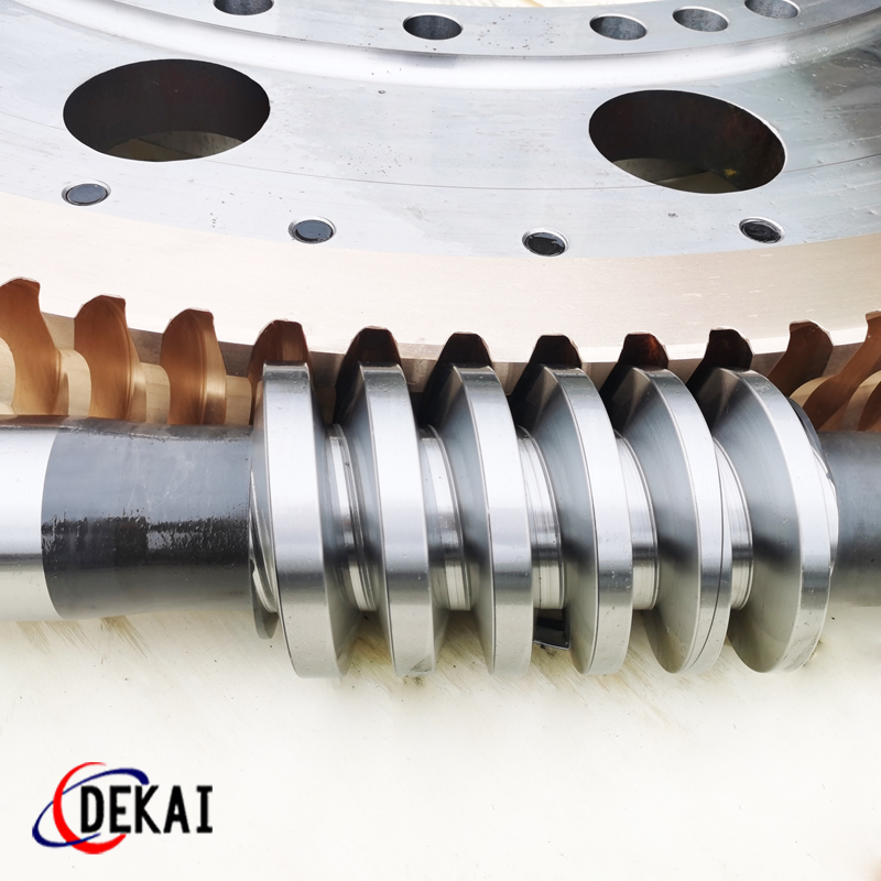 德州德凱減速傳動(dòng)機(jī)械有限公司采用雙蝸桿對(duì)消隙原理開發(fā)生產(chǎn)的精密蝸輪蝸桿副,主要用于大型機(jī)床工作臺(tái)的驅(qū)動(dòng),高精密分割器等無間隙圓周運(yùn)動(dòng)精確定位場(chǎng)合。該蝸輪副中心距最大可做到2000mm,單節(jié)速比可做到1-365同時(shí)不產(chǎn)生回程間隙。